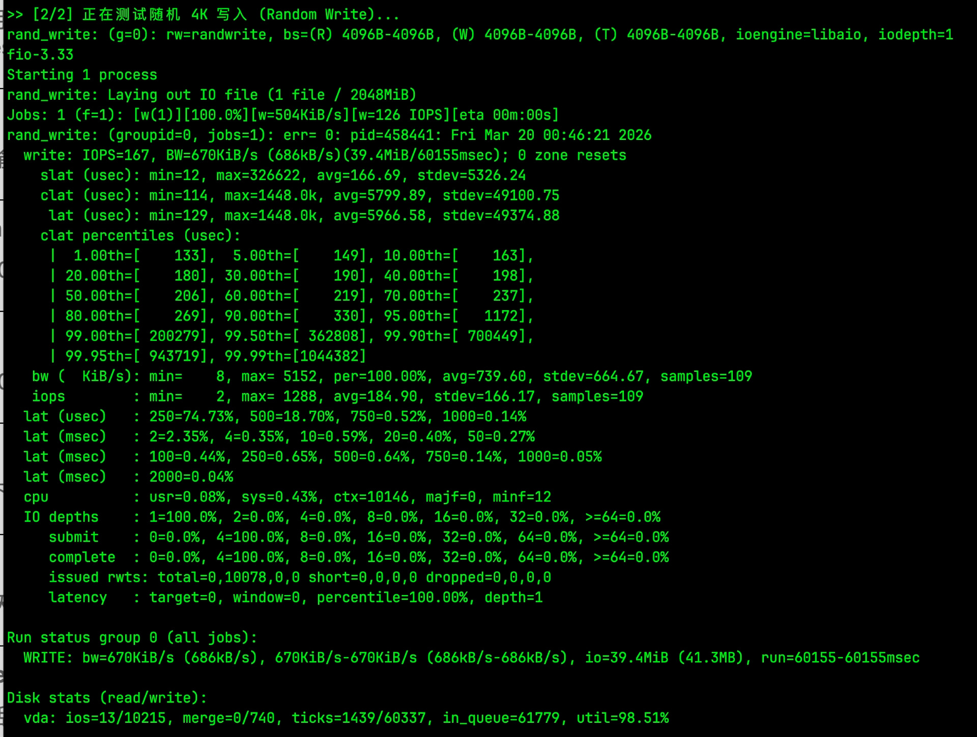 # 2. 随机写入测试 (测 IOPS 和 延迟)